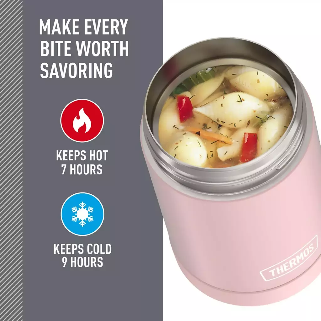 Pote térmico para alimentos Thermos de 16 oz com colher dobrável rosa